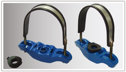 The belts are made of stainless steel AISI 304 with dimensions, width 40 mm, thickness 1,25 mm and a length depending on the dimensions of DN. 1'' Saddles bear one clamping belt and 2'' saddless bear two clamping belts.The belts have on their edge suitable recess for bolts welding. The belts have internally a PVC insert for more even distribution of clamping forces. |